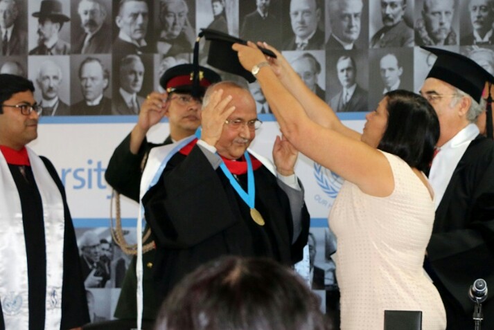 सान होजे– युनिभर्सिटी फर पिस (शान्ति विश्वविद्यालय) ले प्रधानमन्त्री केपी शर्मा ओलीलाई नेपालमा शान्ति तथा प्रजातन्त्र प्राप्तिका लागि पुर्याएको योगदानको कदर गर्दै मानार्थ विद्यावारिधिको उपाधि ‘डक्टर्स अनरिस कजा’ प्रदान गरेको छ ।