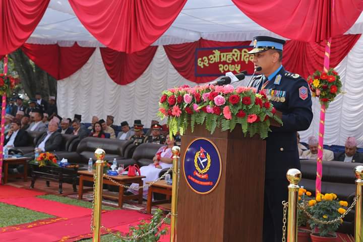 काठमाडौं, २५ असोज, प्रधानमन्त्री केपी शर्मा ओलीको प्रमुख आतिथ्यमा प्रहरी प्रधान कार्यालय नक्सालमा बिहीबार आयोजित विशेष समारोहबीच ६३ औं प्रहरी दिवस २०७५ सम्पन्न भएको छ ।