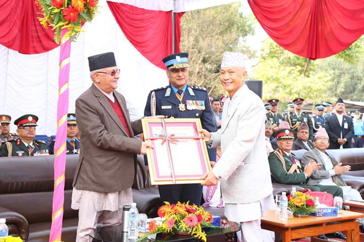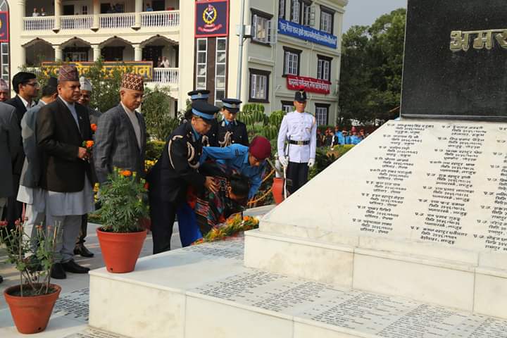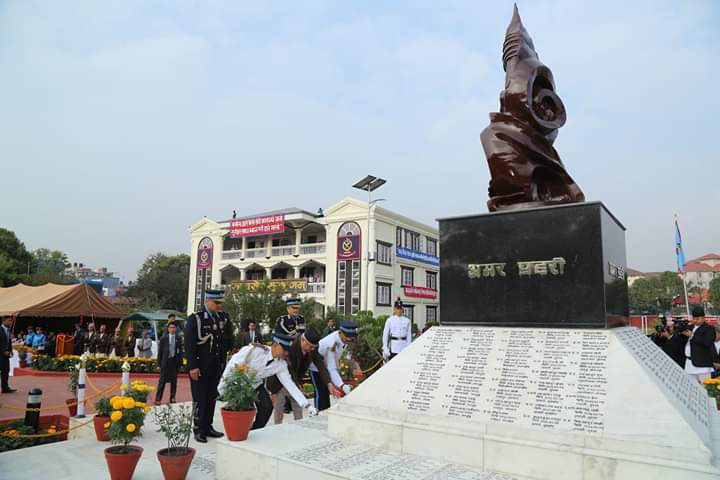 प्रधानमन्त्री ओलीले प्रहरी प्रधान कार्यालयस्थित अमर प्रहरी स्मारकमा पुष्पहार अर्पण गर्नुभयो । प्रहरी दिवसका अवसरमा आयोजित श्रद्धाञ्जलि समारोहमा प्रधानमन्त्री ओलीले यस वर्ष अमरत्व प्राप्त गर्नुभएका प्रहरी सहायक निरीक्षक देवेन्द्रसिंह धामी, प्रहरी हवल्दार गजेन्द्रसिंह ठगुन्ना, प्रहरी जवानहरु राजकुमार आले, शेरसिंह साउद, सुशिल बाँनिया, प्रदिपकुमार यादव, रामप्रसाद पौडेल, विष्णुप्रसाद न्यौपाने र प्रहरी कार्यालय सहयोगी हरिबहादुर गुरुङका आश्रित परिवारलाई कदरपत्र प्रदान गर्नुभयो ।