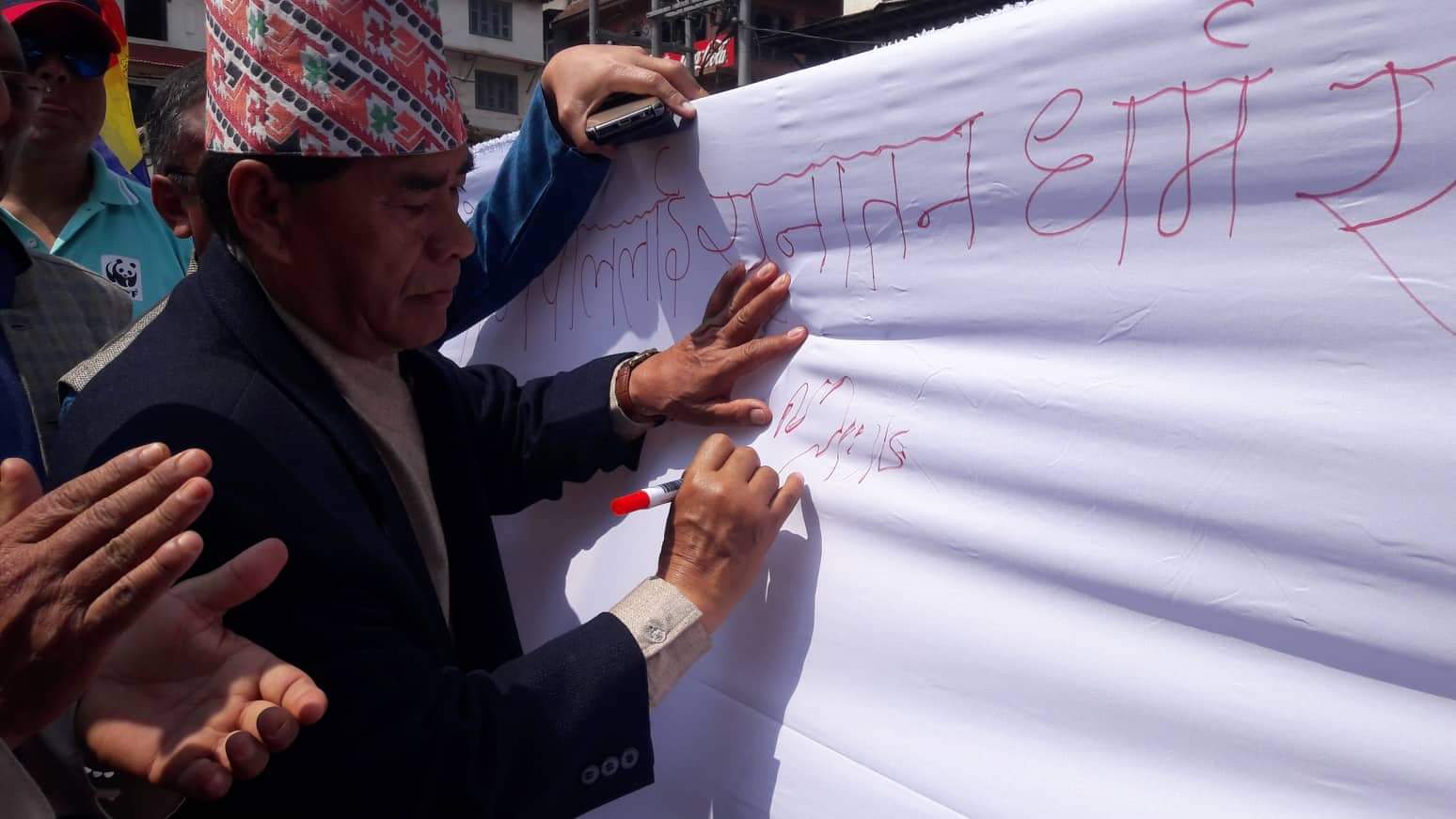 काठमाडौं । राप्रपाले हिन्दु राष्ट्र पुनःस्थापनाका लागि देशव्यापी अभियानको आज थालनी गरेको छ । अध्यक्ष कमल थापाले मकवानपुरको हेटौंडा र जनसंघर्ष परिचालन संयोजक वरिष्ठ उपाध्यक्ष बुद्धिमान तामाङले काठमाडौंमा आयोजित समारोहमा हस्ताक्षर अभियानको थालनी गरेका हो ।