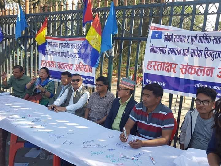 राप्रपाले हिन्दु राष्ट्र पुनस्र्थापनाको लागि चरणबद्ध आन्दोलनको घोषणा यसअघि नै गरिसकेको छ । जस अनुसार चैत्र १२ देखि १६ गतेसम्म प्रचारप्रसार, चैत्र १७ देखि २३ गतेसम्म हिन्दु राष्ट्रको पक्षमा देशव्यापी हस्ताक्षर संकलन अभियान, चैत्र २५ गते केन्द्रमा सिंहदरबार अगाडि, प्रदेशमा प्रदेश राजधानीमा र जिल्लामा जिल्ला सदरमुकामहरुमा १ घण्टे धर्ना, चैत्र २८ गते सम्पूर्ण स्थानीय तहको केन्द्रमा १ घण्टे धर्ना, बैसाख ५ गते सम्पूर्ण जिल्ला सदरमुकाममा धर्म निरपेक्षताको व्यानर/प्लेकार्ड जलाउने तथा बैसाख ८ गते देशका सम्पूर्ण राजमार्ग र चोकहरुमा दिनको १२ देखि २ बजेसम्म २ घण्टे सत्याग्रहका कार्यक्रमहरु रहेका छन् ।