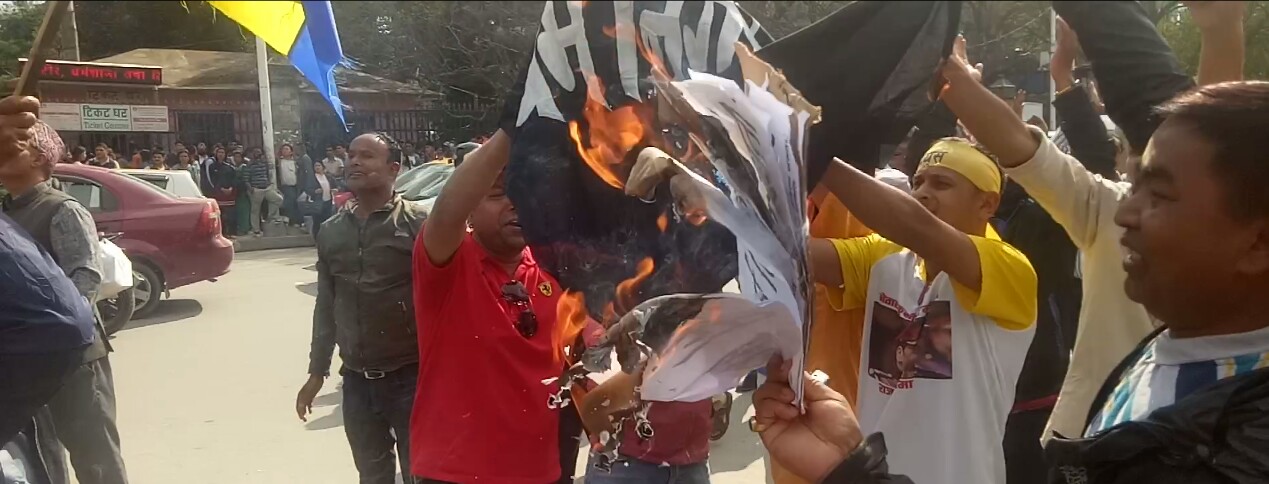 काठमाडौं । राष्ट्रिय प्रजातन्त्र पार्टी(राप्रपा) ले हिन्दु राष्ट्र पुनःस्थापनाको माग राख्दै धर्म निरपेक्षताको ब्यानर र पोष्टर जलाएको छ । धर्म निरपेक्षताको ब्यानर र पोष्टर जलाउने क्रममा थुप्रै नेता कार्यकर्ता पक्राउ परेका छन् ।