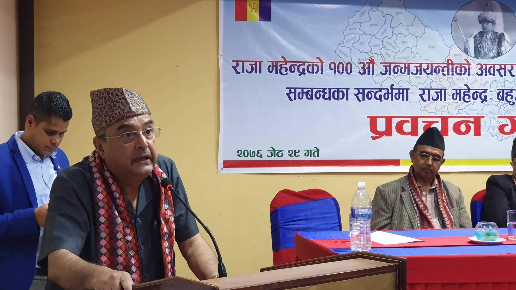 त्यस्तै कार्यक्रम कार्यक्रममा राप्रपाका वरिष्ठ नेता विश्वबन्धु थापाले राजा महेन्द्रकै नितिका कारण नेपाल आजसम्म सुरक्षित रहेको बताएका छन् ।