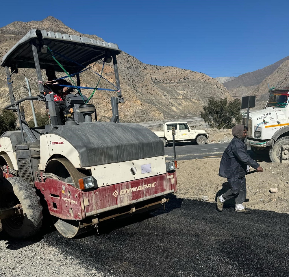 कार्यालयका प्रमुख अजय श्रेष्ठले निर्माण व्यवसायीले बिहीबारदेखि जोमसोम तर्फबाट प्रिमिक्स प्रविधिको कालोपत्र गर्न थालेको बताए। पहिलो दिन एकतर्फी तीन सय मिटर कालोपत्र भएको छ ।