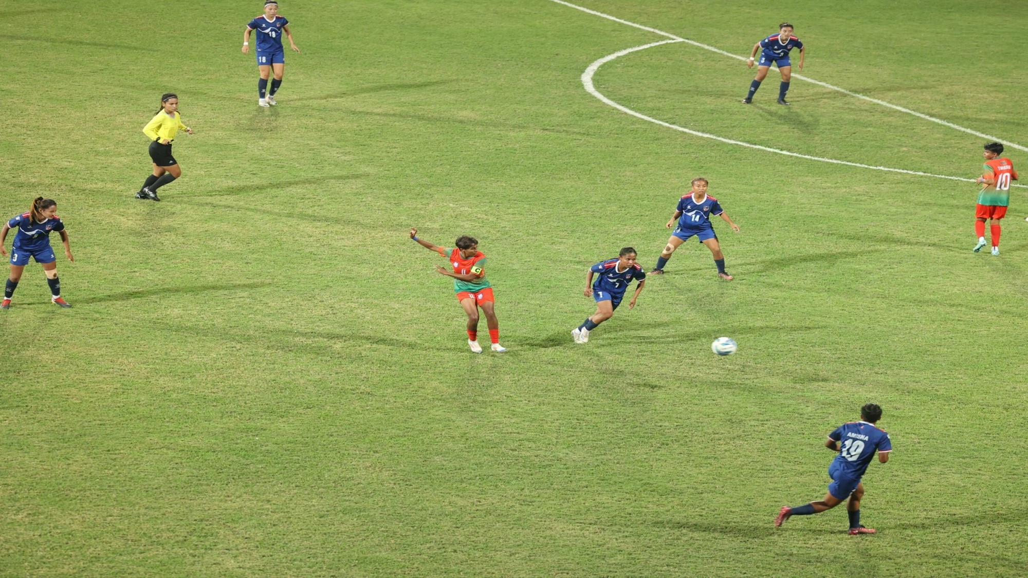 दशौं मिनेटमा नेपालको अग्रता लिने प्रयासमा क्रसबार नै बाधक बन्यो । अमिशा कार्कीले पेनाल्टी क्षेत्र बाहिरबाट गरेको प्रहार बारमा लागेको थियो ।