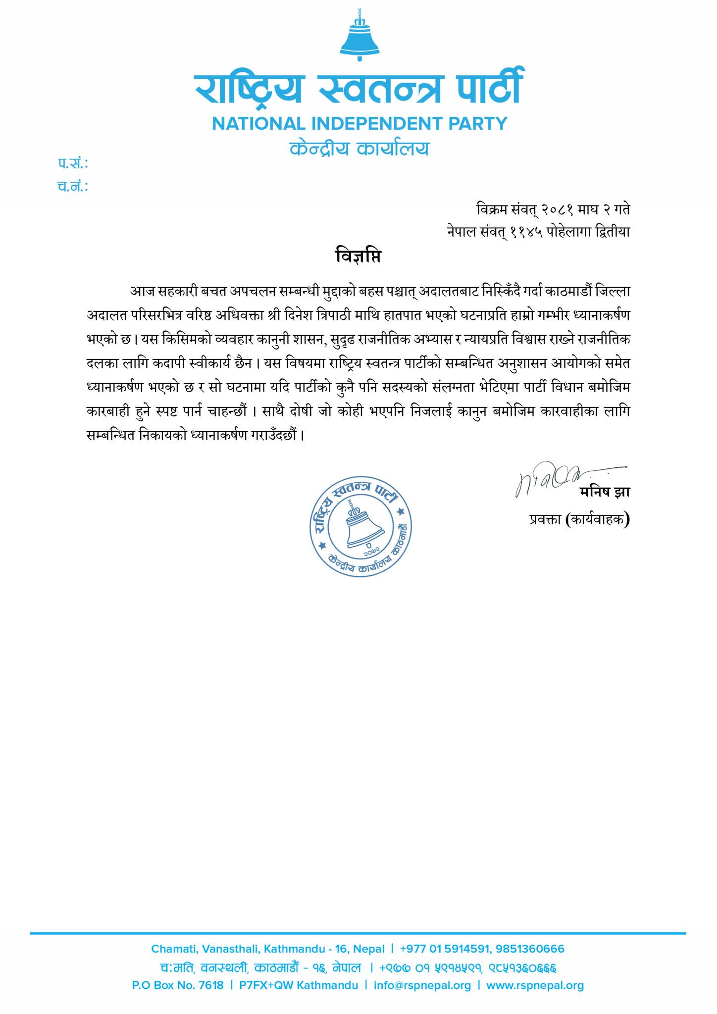रास्वपा केन्द्रले जारी गरेको विज्ञप्ति–