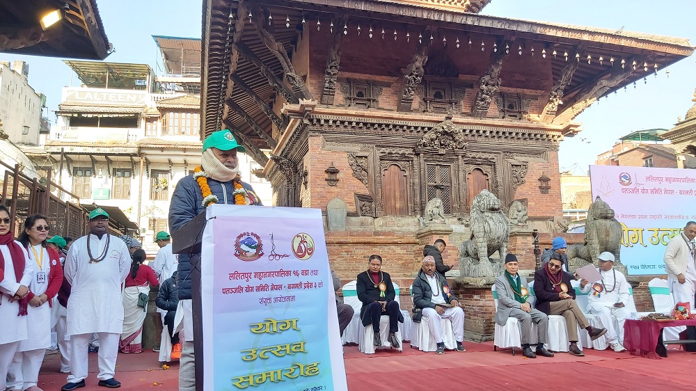 ललितपुर महानगरपालिका वडा नं १६ तथा पतञ्जली योग समिति बागमती प्रदेशको संयुक्त रूपमा आयोजना आज मङ्गलबजारमा सुरु भएको योग उत्सव समारोहमा डा यादवले योग साधनाले पूर्वीय सभ्यतालाई उजागर गरेको र यसले स्वास्थ्यका लागि सकारात्मक प्रभाव पार्ने बताए ।