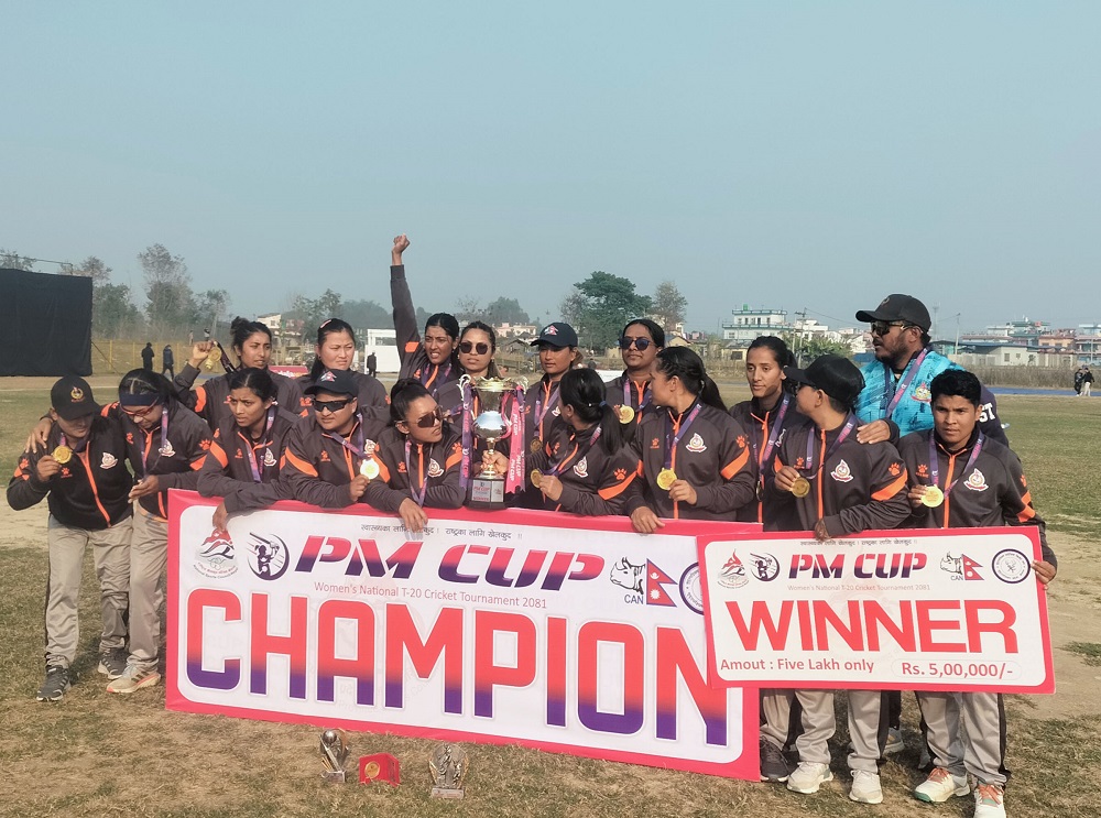 कैलाली । धनगढीमा जारी प्रधानमन्त्री कप महिला राष्ट्रिय टि- २० क्रिकेट प्रतियोगिताको उपाधि एपिएफ क्लबले जितेको छ ।