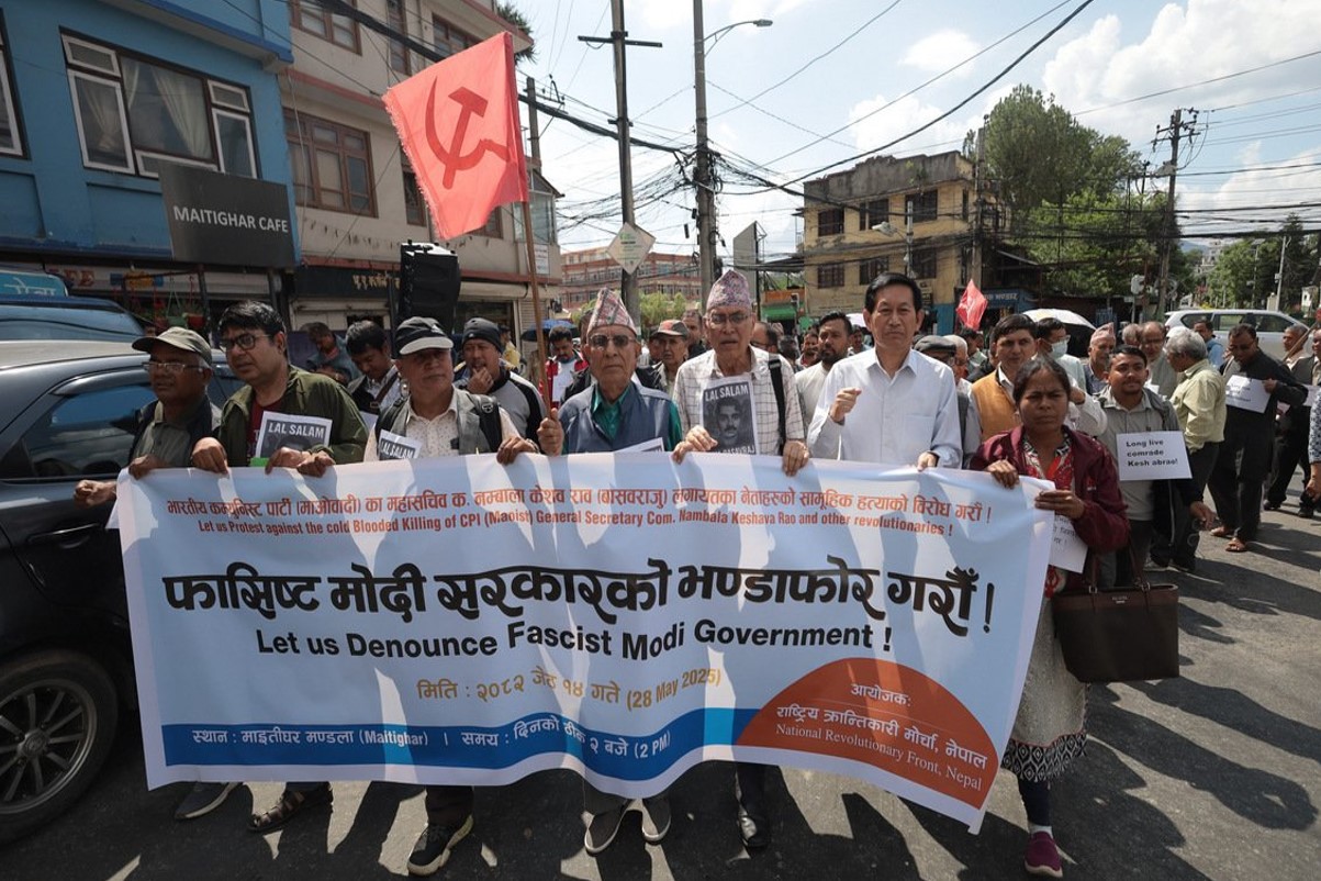 काठमाडौँ । भारतीय कम्युनिस्ट पार्टी (माओवादी) का महासचिव नम्बला केशवराव ‘वसवराज’को हत्याको विरोधमा बुधबार काठमाडौँमा प्रदर्शन भएको छ ।